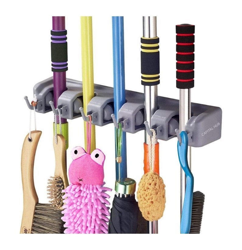 Strong and sturdy – The mop and broom holder organizer is made of tough plastic, which can hold up to 22 lbs in total. Each ball holds up to 7-1/2 pounds of weight.